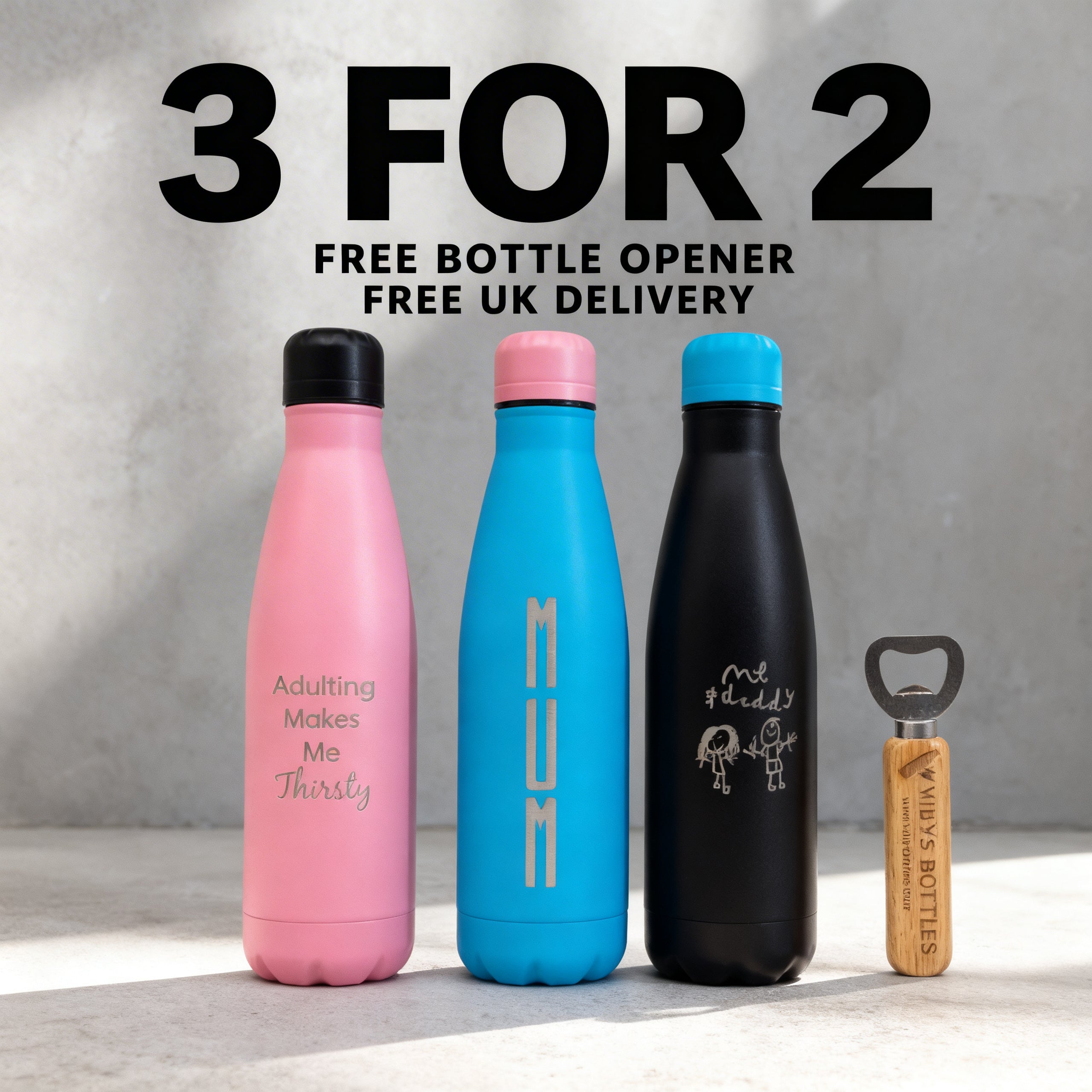 Whether it’s a festival weekend, a workout, or life on the go, our personalised stainless steel bottles are designed to keep up. From bold statements to meaningful engravings, if you can think it, we can engrave it. Durable, stylish, and made to be taken everywhere.